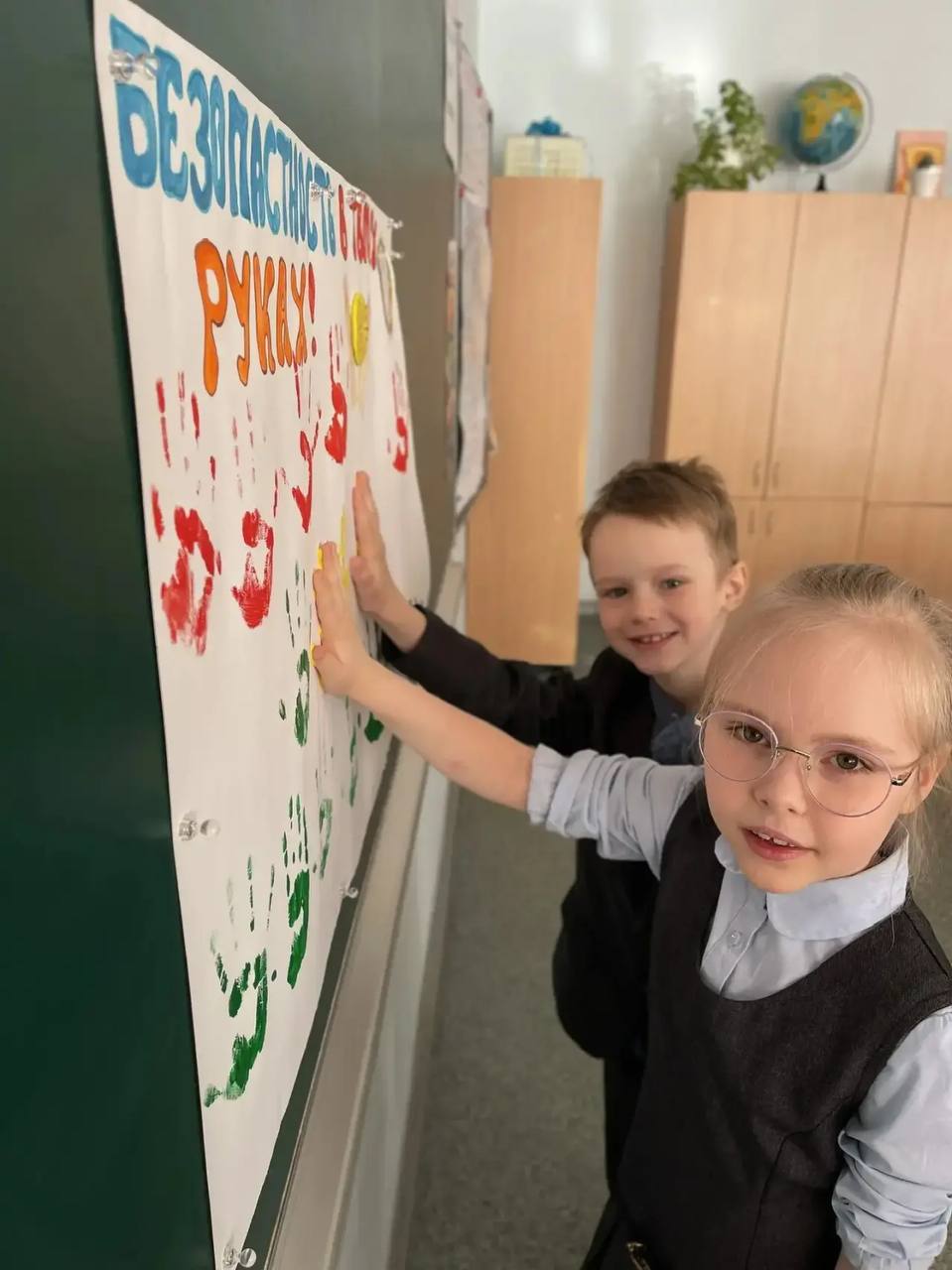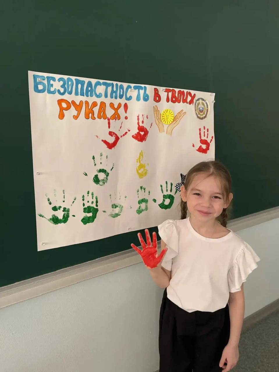 На занятии ребята вместе с инспекторами Госавтоинспекции Людмилой Строгановой и Викторией Гриб создали яркий тематический плакат, на котором с помощью ладошек и красок оставляли свой след. Каждый отпечаток символизирует вклад ребёнка в общее дело — обеспечение безопасности на дорогах.