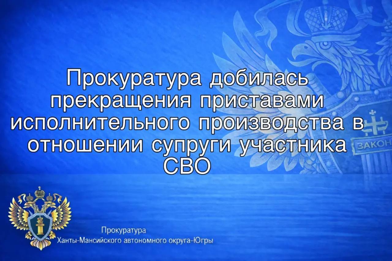 После вмешательства надзорного ведомства исполнительное производство в отношении супруги участника СВО прекращено.