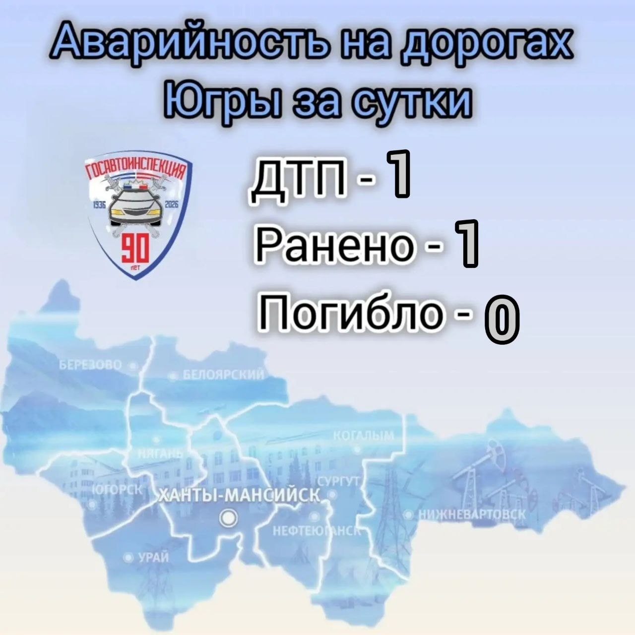 Зарегистрировано 1 ДТП, в котором 1 человек получил травмы.