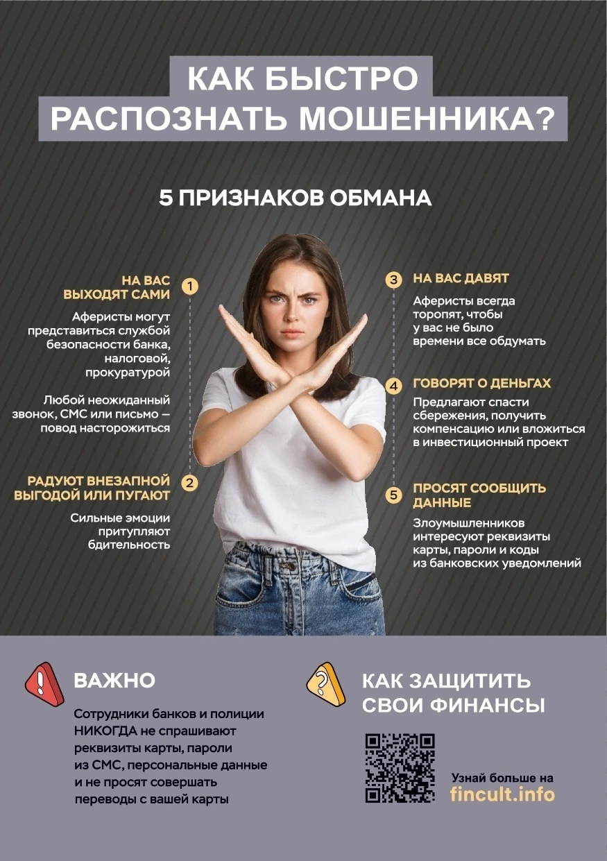 Полиция Югры напоминает: не передавайте коды из СМС, не переводите деньги по требованию незнакомцев. Если сомневаетесь в звонке, немедленно прерывайте разговор или перезвоните в банк/полицию по официальным номерам, указанным на сайте или банковской карте. Ваша бдительность — залог сохранности сбережений!