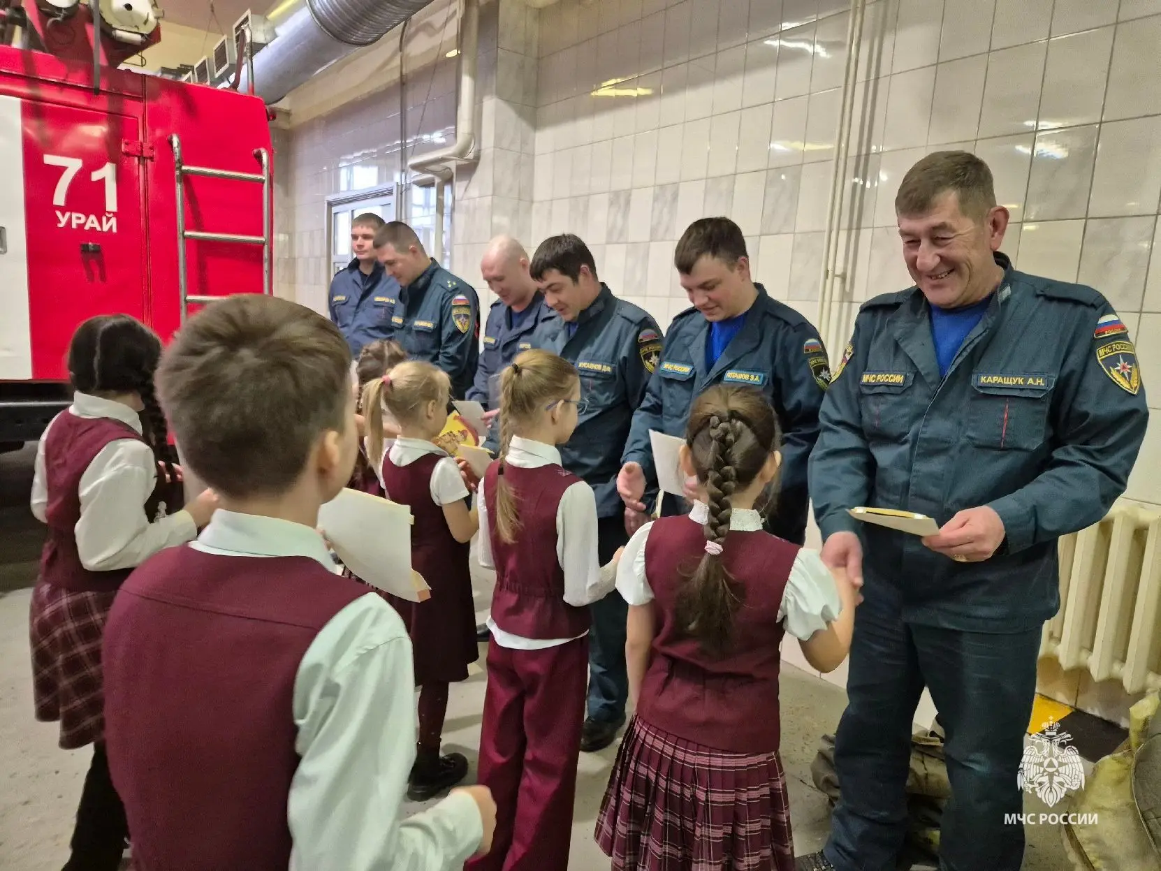 В 71 пожарно-спасательную часть Урая с торжественной миссией пришли ученики 2 класса, чтобы поздравить огнеборцев с профессиональным праздником. Ребята под руководством классного руководителя своими руками подготовили поздравительные открытки и вручили их представителям одной из самых мужественных и героических профессий.