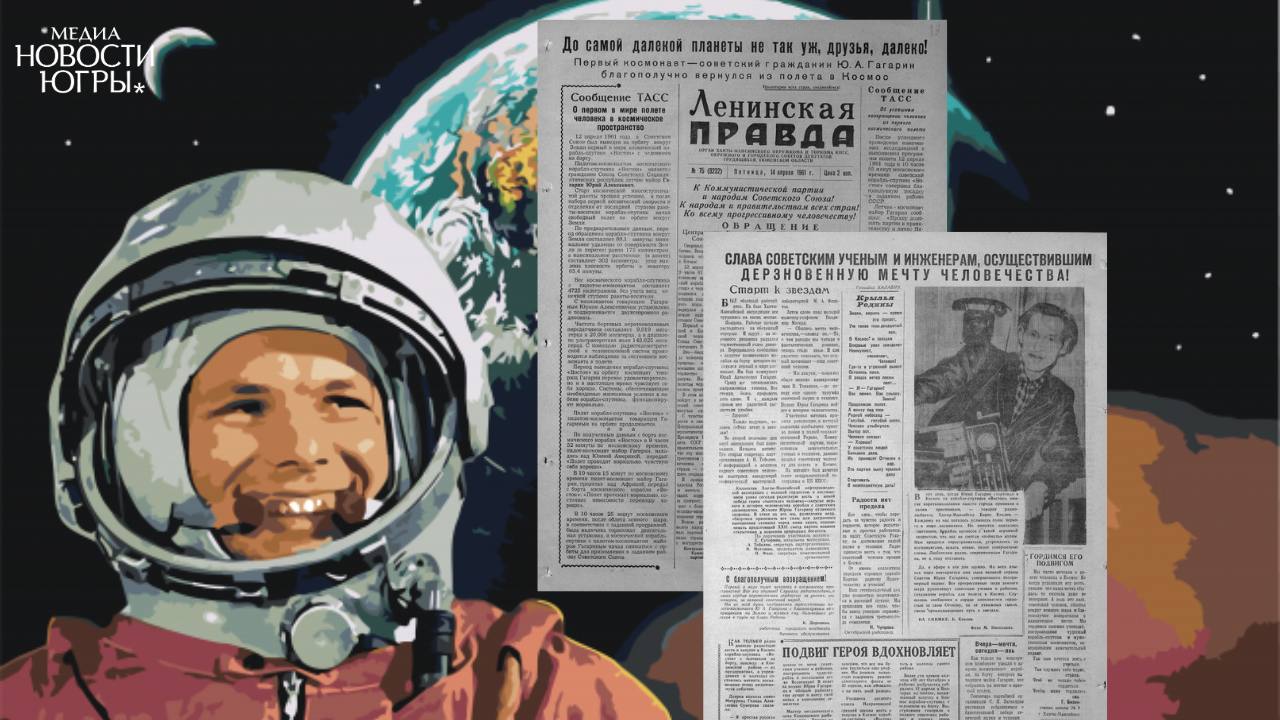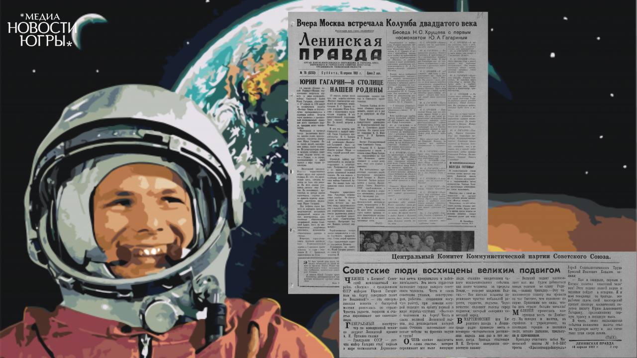 Югорчане поддержали Гагарина трудовыми рекордами, а новорожденным 12 апреля дали имя Юрий. Главная газета округа «Ленинская правда» (ныне «Новости Югры») рассказала в апрельском номере своим читателям об историческом событии – дерзкой мечте человечества выйти в космос, который покорил советский космонавт Юрий Гагарин.