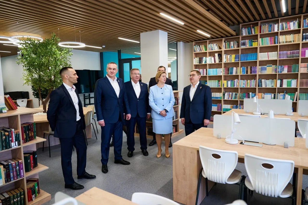 Вместе с губернатором автономного округа Русланом Кухаруком посетили Югорский физико-математический лицей. Новое здание построили по народной программе «Карта развития Югры». Внутри — трансформируемые учебные зоны, мастерские, уютные места для отдыха. После открытия в лицее появится кластер дополнительного образования: ребята смогут изучать управление беспилотниками, геномное редактирование и инженерные биологические системы.