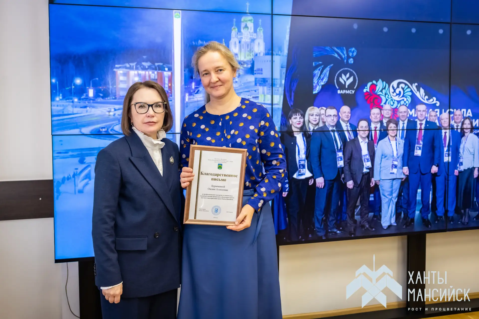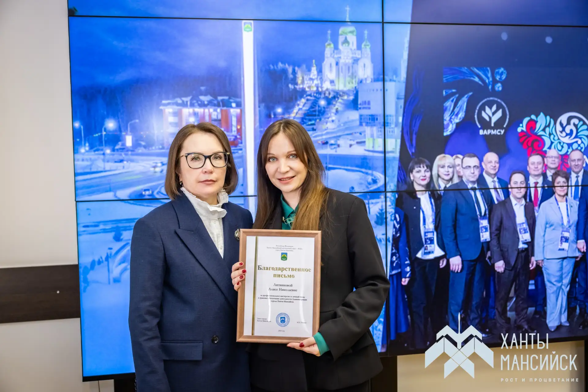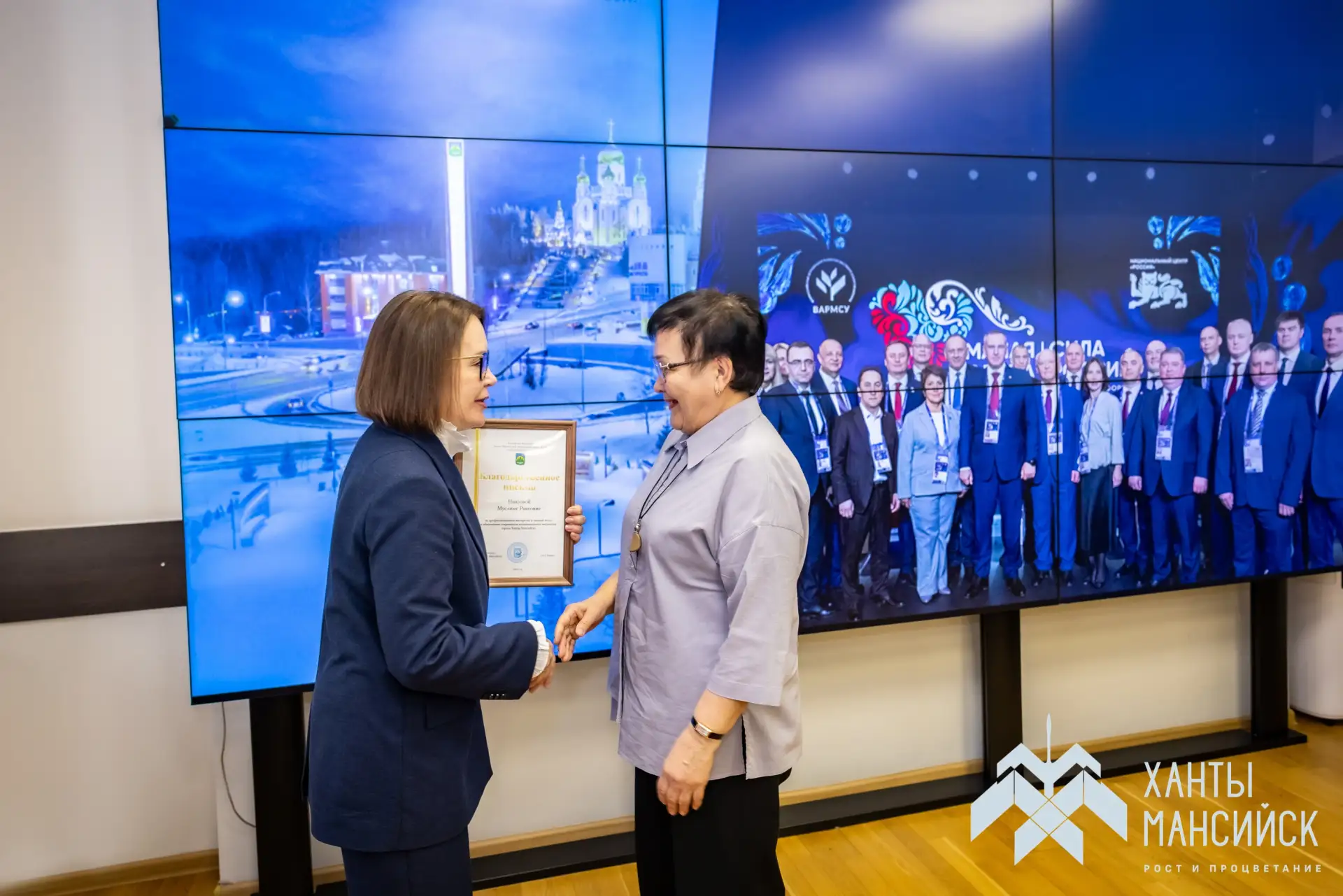 В День местного самоуправления в Администрации Ханты-Мансийска исполняющая полномочия Главы города Наталья Дунаевская вручила награды за многолетний труд и профессиональное мастерство муниципальным работникам