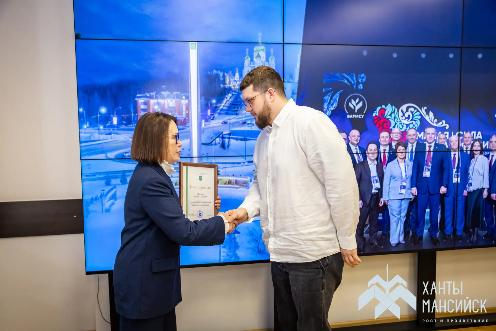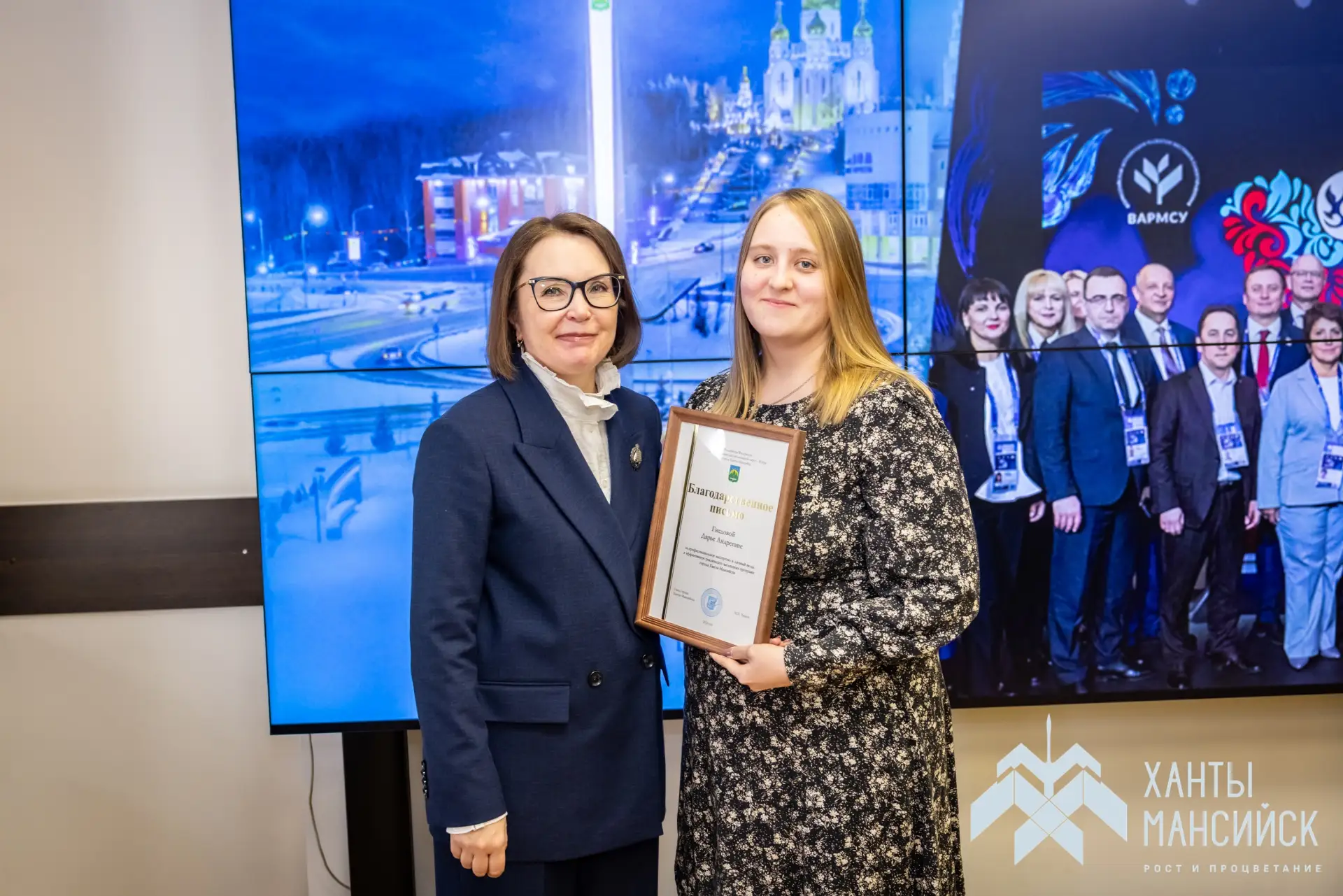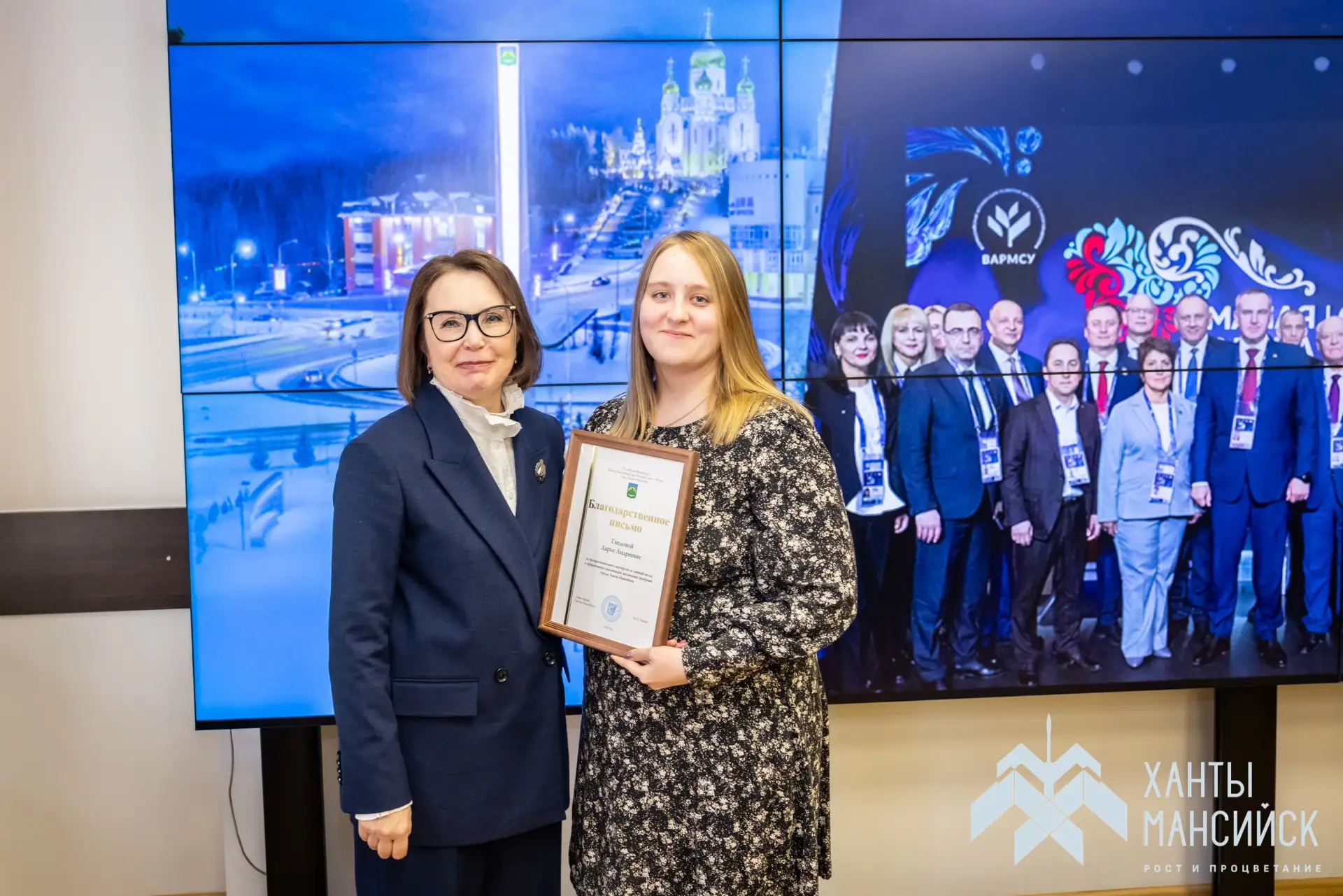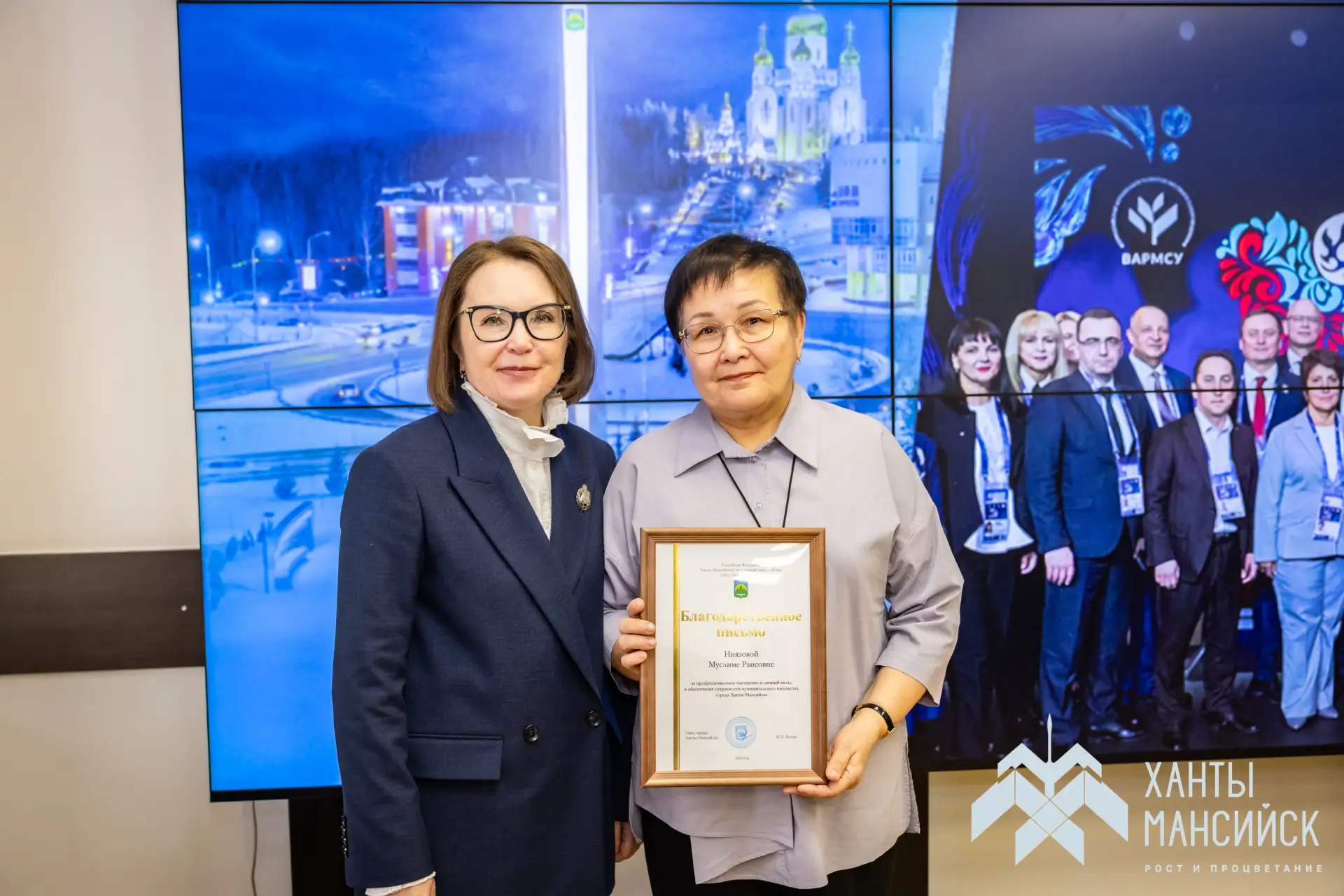 В День местного самоуправления в Администрации Ханты-Мансийска исполняющая полномочия Главы города Наталья Дунаевская вручила награды за многолетний труд и профессиональное мастерство муниципальным работникам
