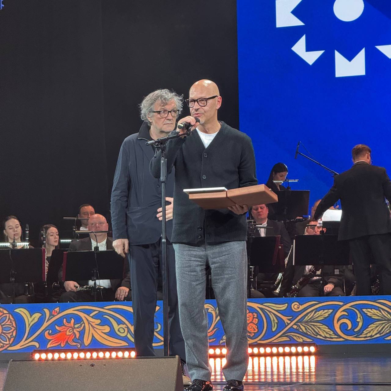 Эмир Кустурица вручил приз президента кинофестиваля «Дух огня» Федору Бондарчуку