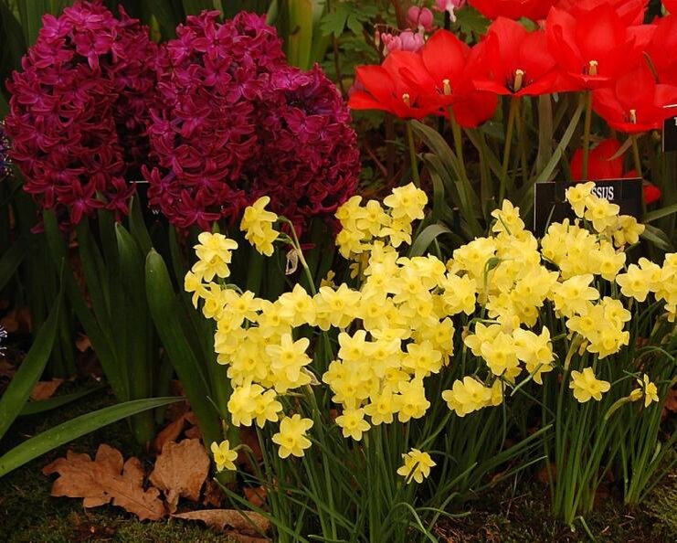 Луковичные цветы, такие как тюльпаны, нарциссы и мускари, отлично подходят для временных цветников. Их можно высаживать в самых разных местах, а после цветения пересадить в другой уголок сада.