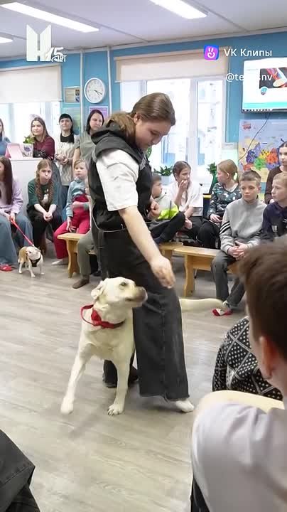 Руководитель клуба юного собаковода Оксана Криклина и ее воспитанники вместе со своими собаками продемонстрировали ребятам навыки дрессировки, поделились советами по уходу за собаками и устроили настоящий концерт с пушистыми артистами.