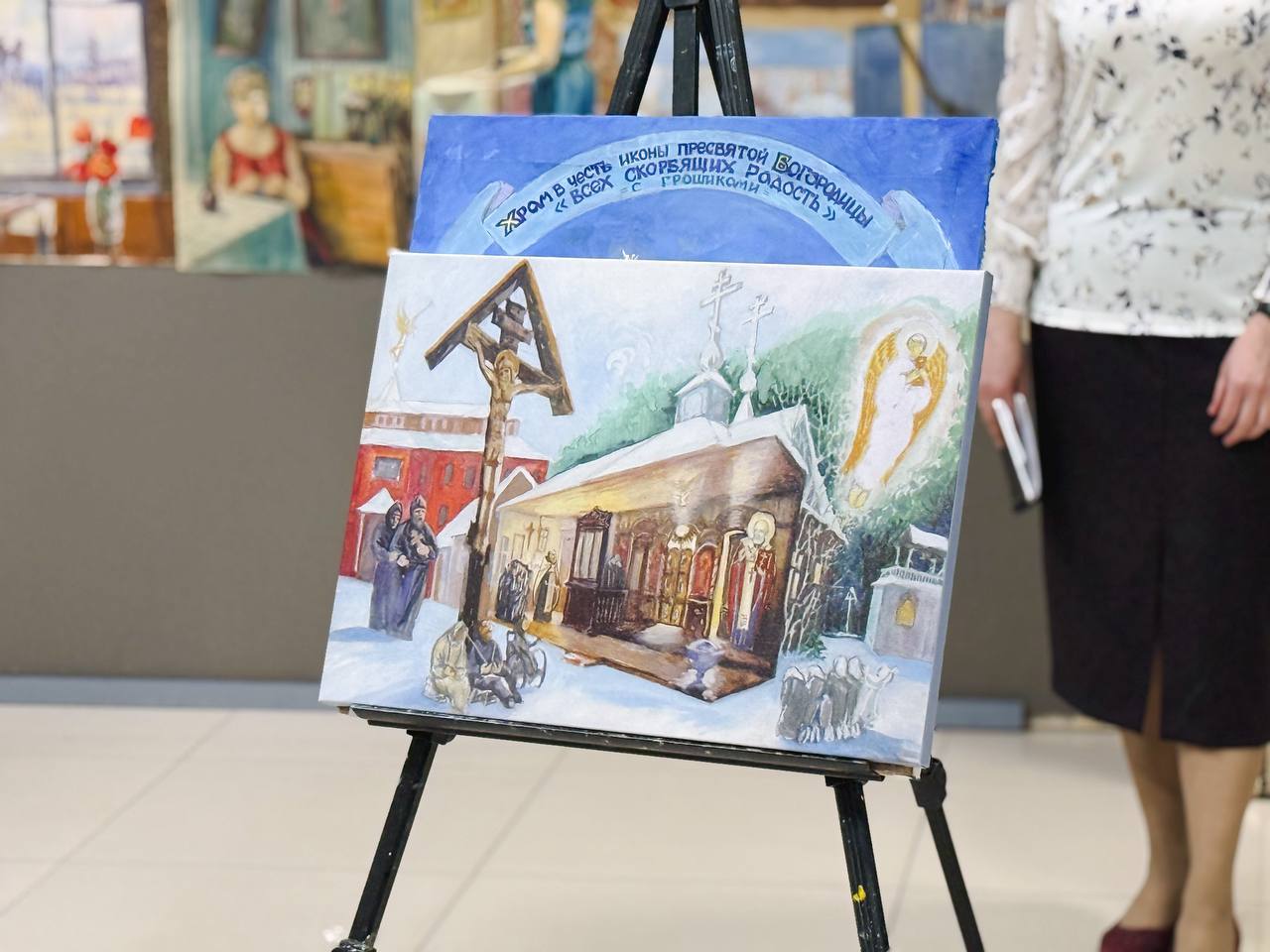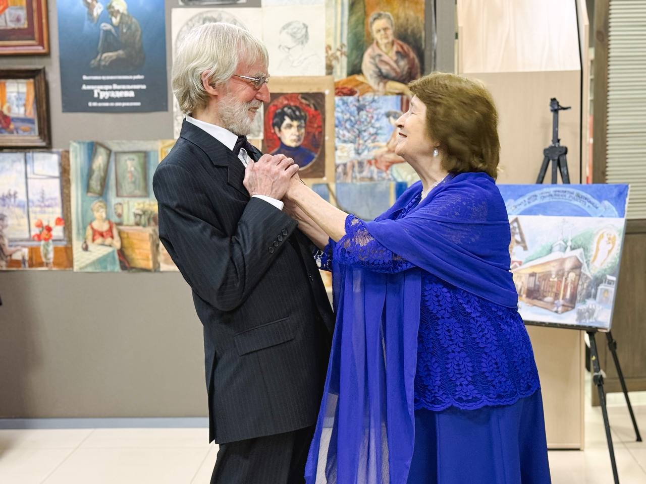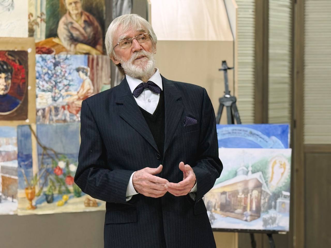 Сегодня, в рамках торжества, состоялось открытие выставки художественных картин Александра Васильевича. Экспозиция включает около восьмидесяти работ, что символично перекликается с возрастом автора. Картины разделены на несколько тематических серий: от православия до архитектуры. В своей палитре мастер использует акварель, масло, гуашь и графику, демонстрируя виртуозное владение разными техниками.