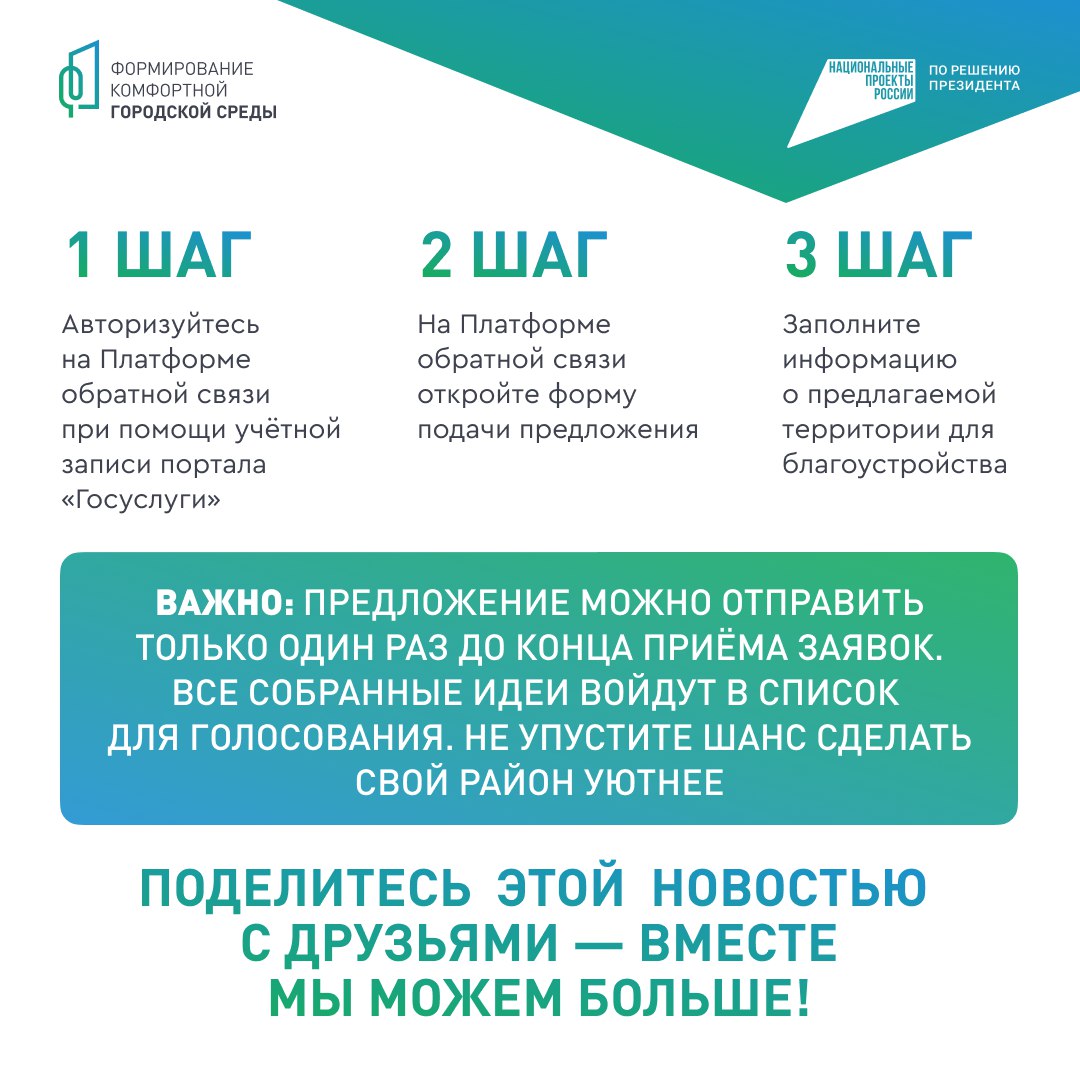 Югорчане могут предложить идеи благоустройства территорий до 27 марта. Именно вы решаете - какие места преобразятся в рамках федерального проекта «Формирование комфортной городской среды».