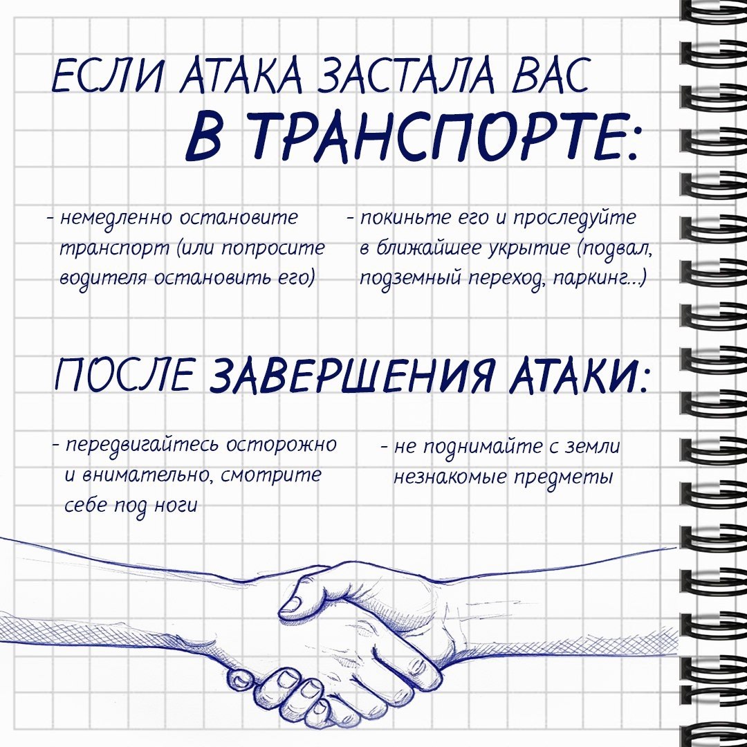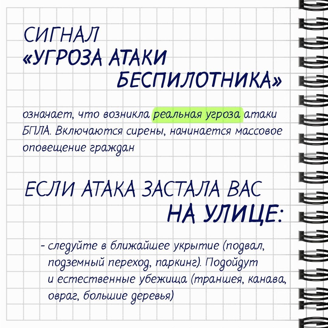 Покидать безопасное место можно только после получения сигнала «Отбой угрозы атаки беспилотника».