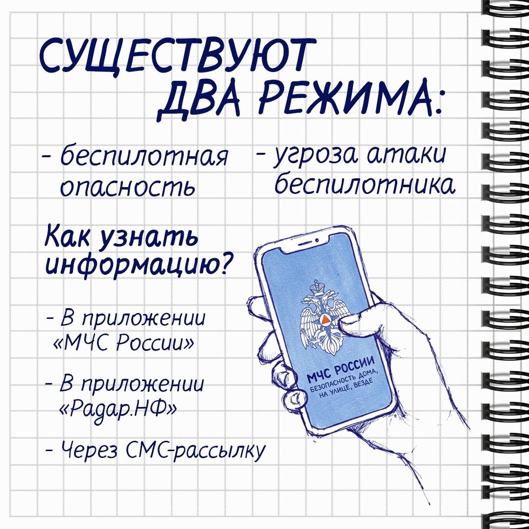 Это говорит о том, что правила поведения при возникновении угрозы с воздуха должны знать все и уметь применить эти знания при необходимости. По информации управления по вопросам законности, правопорядка и безопасности администрации города Нижневартовска, МЧС России и другими силовыми ведомствами разработаны рекомендации о действиях при непосредственной угрозе атаки беспилотных воздушных судов и при обнаружении таких летательных аппаратов вблизи региона проживания. Это сигналы «Беспилотная опасность» и «Угроза атаки беспилотника».