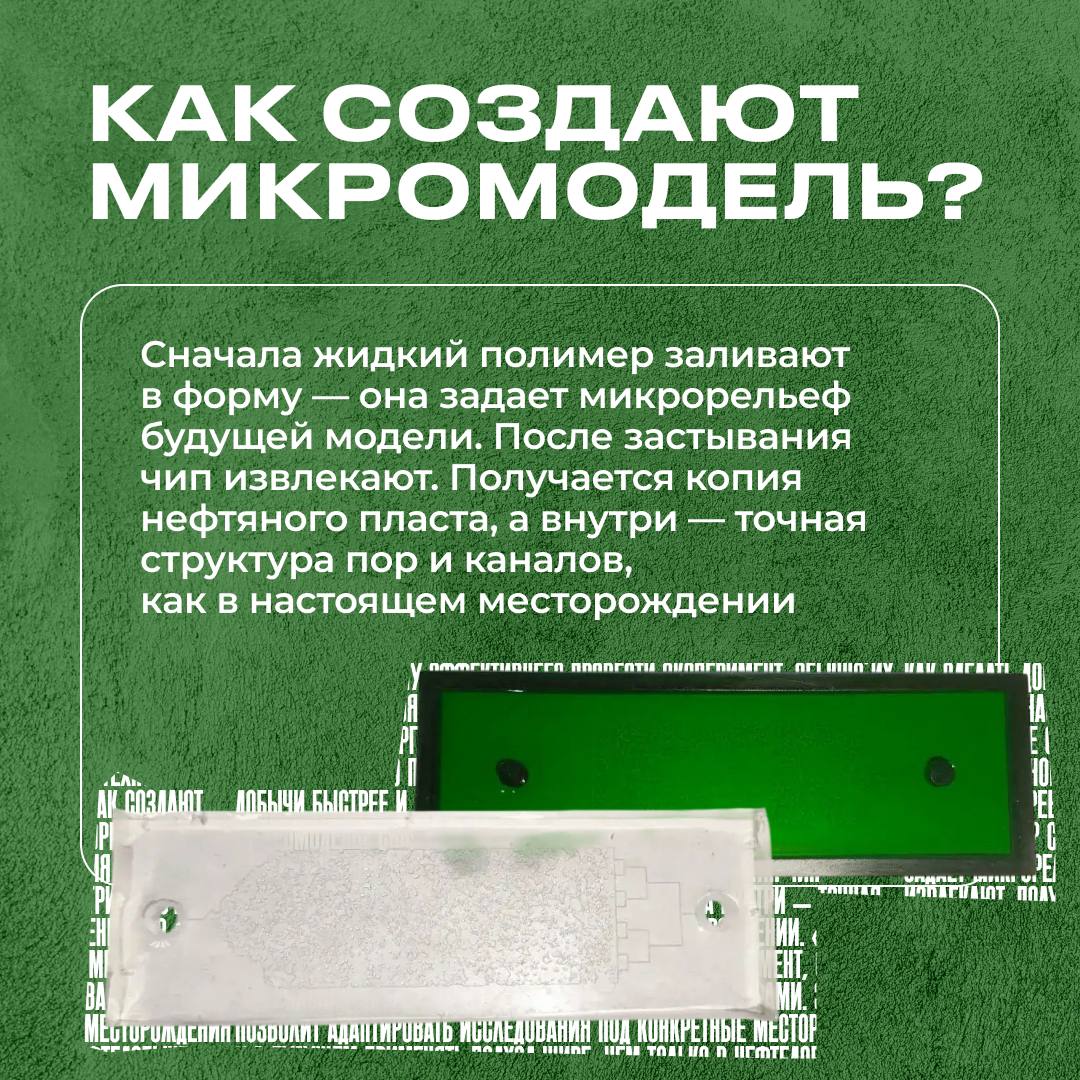 Сегодня команда проекта работает над созданием физического прототипа микромодели. В перспективе такие чипы можно настроить под свойства пород любого месторождения Югры. Нефтяные компании смогут быстрее подбирать действенные методы для своих скважин, экономя время и ресурсы.