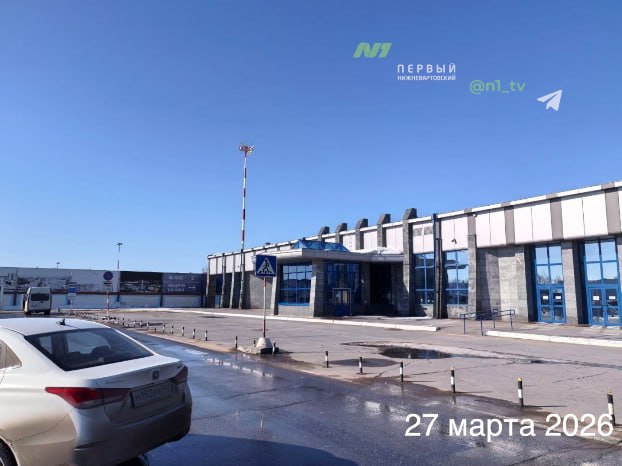 Дороги и площадь перед зданием Нижневартовского аэропорта убираются от снега на круглосуточной основе. Возможно, был момент, когда были сформированы снежные валы для уборки. На сегодняшний день территория очищена от снега,