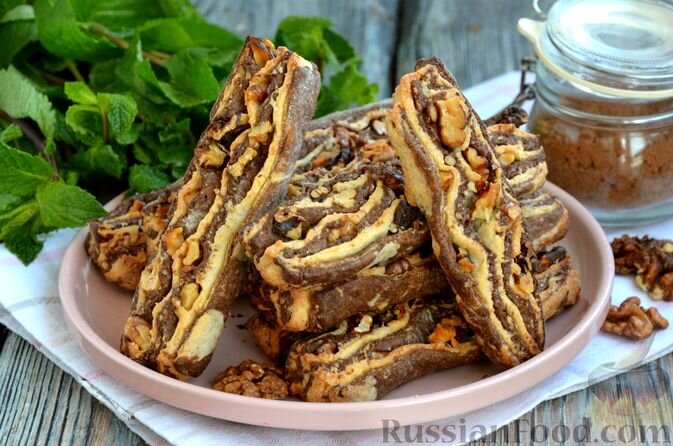 Для любителей печеного – полосатое песочное печенье с грецкими орехами, которое удивит вас своим вкусом и ароматом. Песочное тесто, разделённое на светлую и шоколадную части, в сочетании с хрустящими орехами создаст идеальный десерт к чаю.