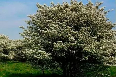 Данный сорт ирги выделяется среди остальных благодаря своим ярким характеристикам. Это кустарник, способный достигать высоты до четырех метров с широкой раскидистой кроной, достигающей шести метров в диаметре. Растение образует множество вертикальных стволов, и в процессе созревания плодов его ветви начинают дугообразно изгибаться под тяжестью ягод. Листва имеет тёмно-зелёный цвет с чётким жилкованием и матовой поверхностью, что добавляет дополнительную декоративность. Цветки, собранные в соцветия, начинают распускаться в апреле и радуют глаз около двух недель.