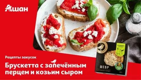 Эта брускетта с запечённым перцем и козьим сыром готова! Приятного аппетита!