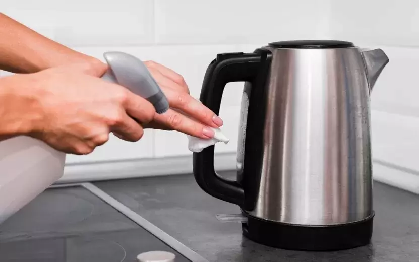 Электрические чайники: Модели из нержавеющей стали, стекла или пластика нельзя полностью погружать в воду. Чистка должна ограничиваться внутренней колбой. Перед процедурами стоит обесточить устройство и дать ему остыть. У многих чайников имеется съемный фильтр, который можно замочить в уксусе для удаления накипи.
