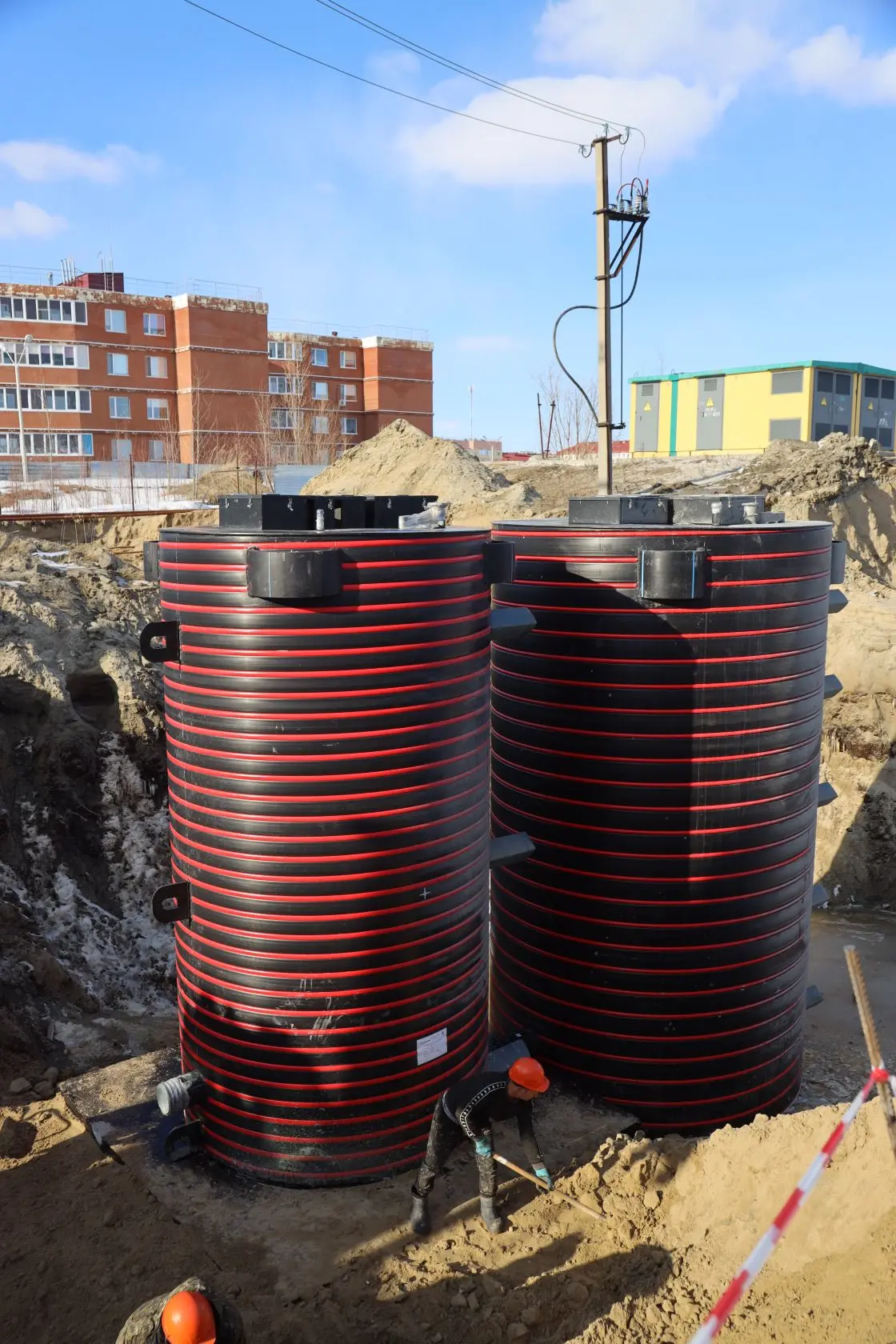 В настоящий момент здесь выполняется устройство траншеи под сети канализации, идёт прокладка сетей и устройство колодцев. Завершены работы по монтажу емкостей КНС. На реализацию объекта бюджетом города выделено почти 70 млн. руб.