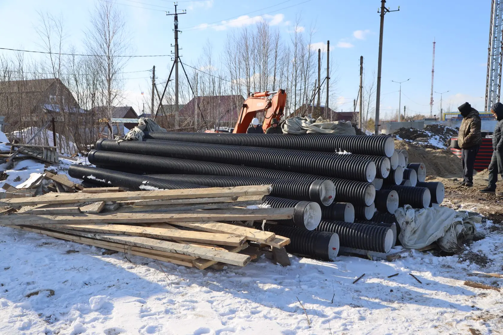 В квартале 5П продолжается строительство системы водоотведения. Вместе с коллегами и представителями общественности выехал на объект, лично проверил ход работ.