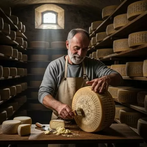 Возраст сыра зависит от сорта: молодые — несколько недель, полутвёрдые — месяцы, твёрдые — годы. Пармезан может созревать от двух до десяти лет, накапливая глубину вкуса и прочность текстуры.