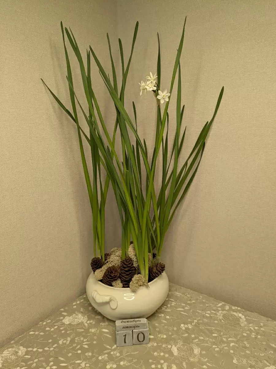 Гиацинты, хоть и не успевают за весельем зимних праздников, могут удивить своей красотой даже в процессе роста. Исключением выступают тюльпаны, которые дожидаются своего времени — пока листья начнут разворачиваться, их лучше не тревожить.