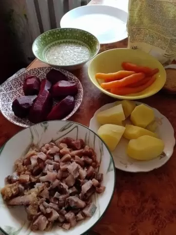 Овощи следует тщательно отварить: это поможет сохранить их натуральный вкус и текстуру. Лук может быть слегка замаринован в уксусе во время готовки остальных ингредиентов. Сельдь очищается и нарезается на маленькие кубики, что облегчит дальнейшую сборку салата.
