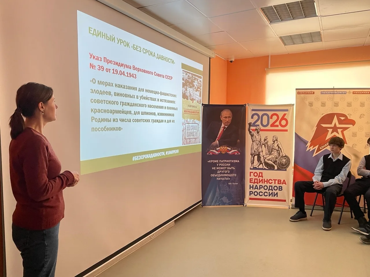 В Сургуте в преддверии памятной даты для школьников и воспитанников патриотических объединений прошли уроки мужества в центре патриотического воспитания «Саланг». Подросткам представили неопровержимые факты, подтверждающие нацеленную политику Германии и её союзников по уничтожению советского народа в ходе Великой Отечественной войны, результаты реализации проекта «Без срока давности». Ребятам провели экскурсию по экспозиции «Воинская доблесть».