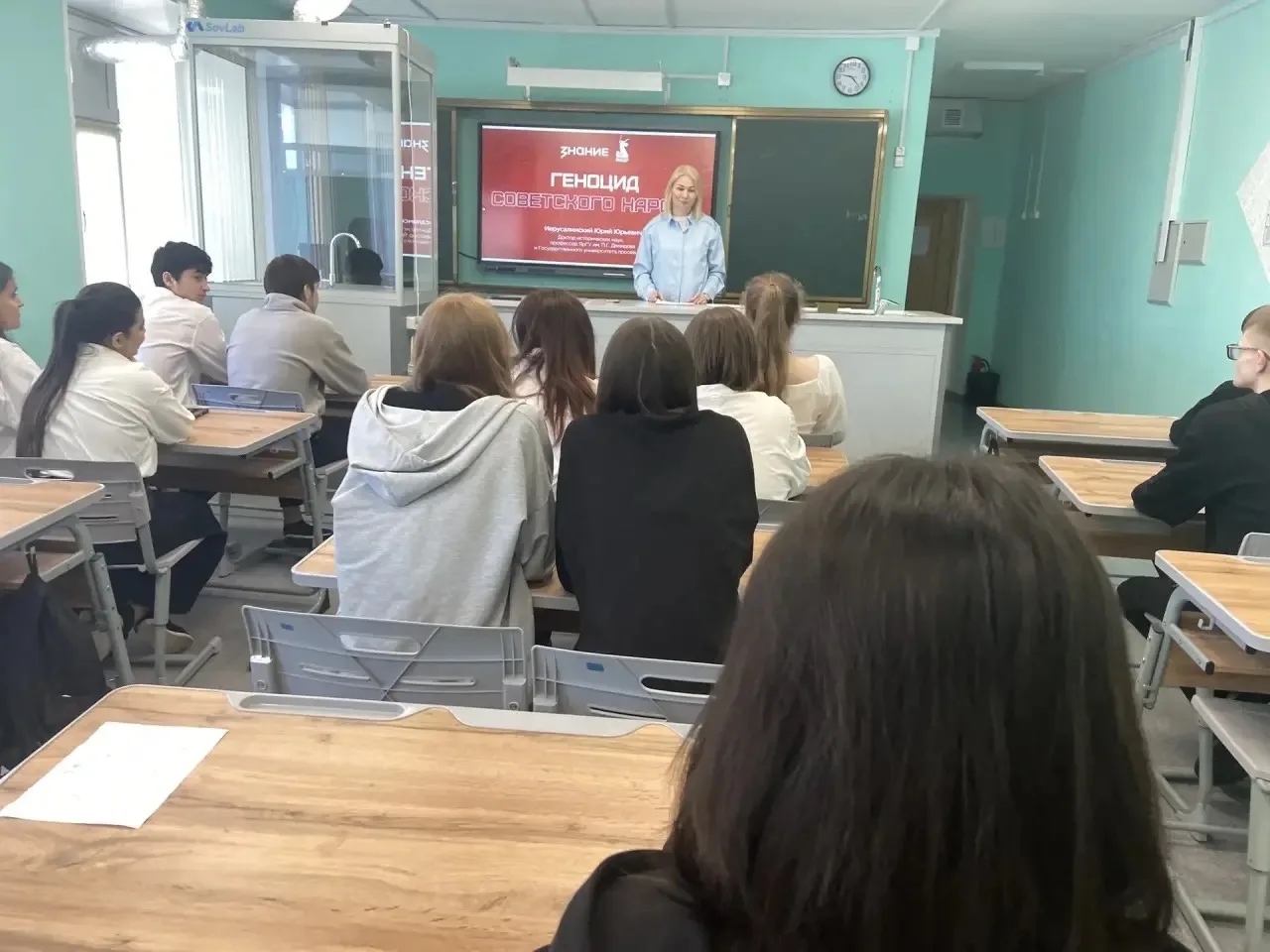 В школах состоялись просветительские уроки. Ученики начальных классов сделали своими руками памятные карточки, старшеклассники приняли участие в лекции от Российского общества «Знание» на тему: «Геноцид советского народа». Говорили о фактах, цифрах, судьбах – о том, что нельзя забывать.