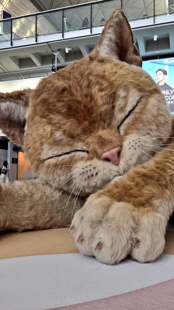 Такой пушистик появился в аэропорту Гонконга — кот мурчит, двигает ушками и хвостом, и в целом выглядит максимально реалистично. (И чуть-чуть жутко)