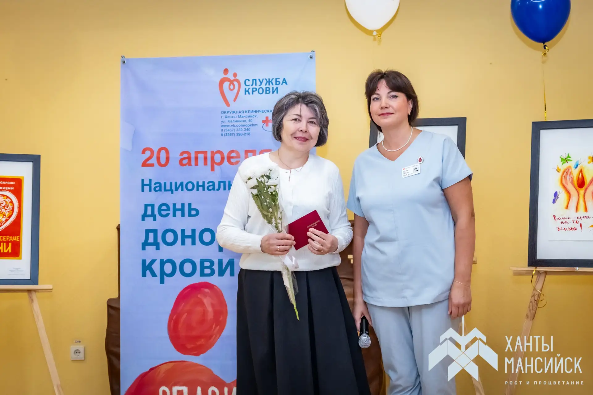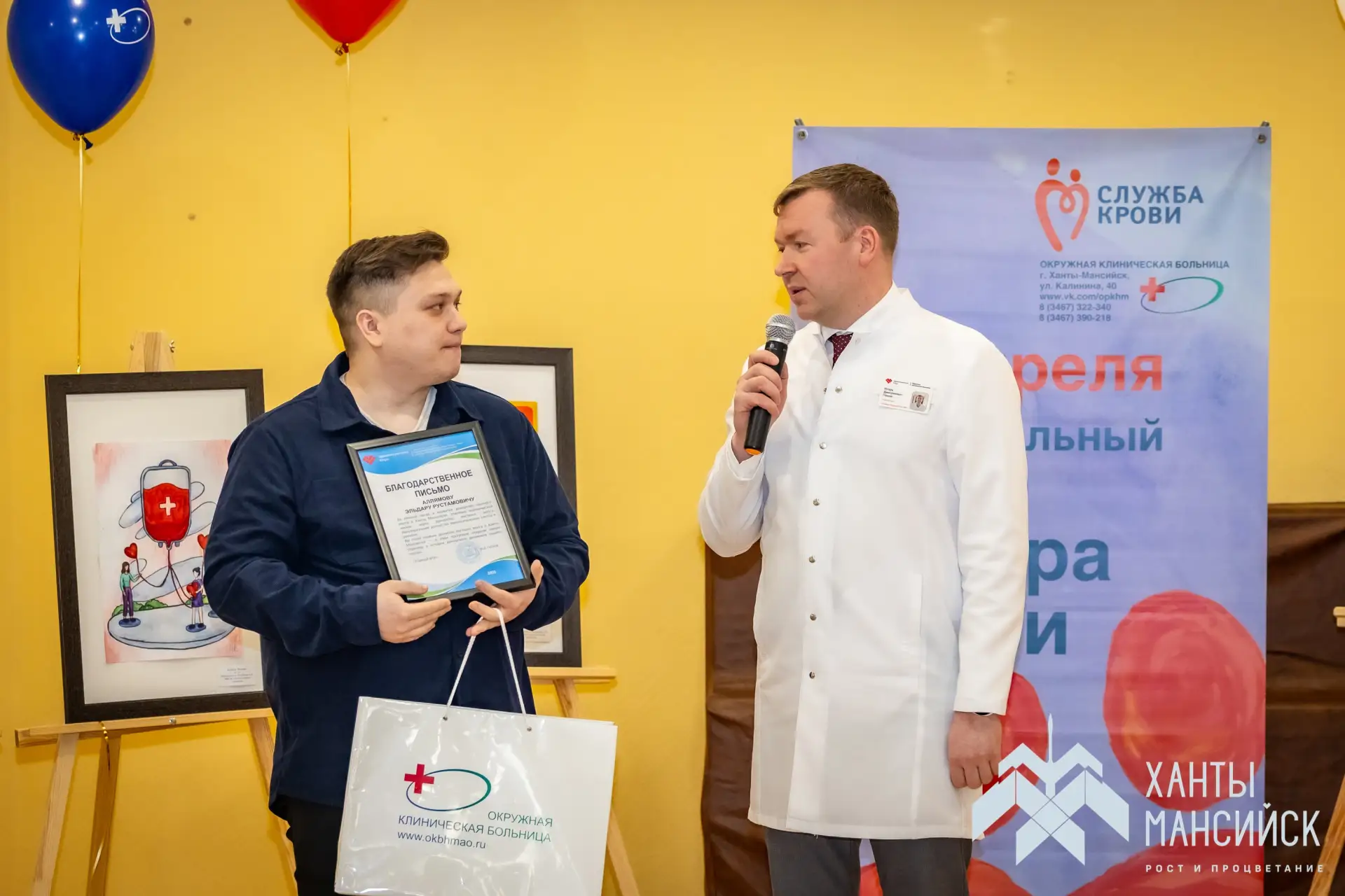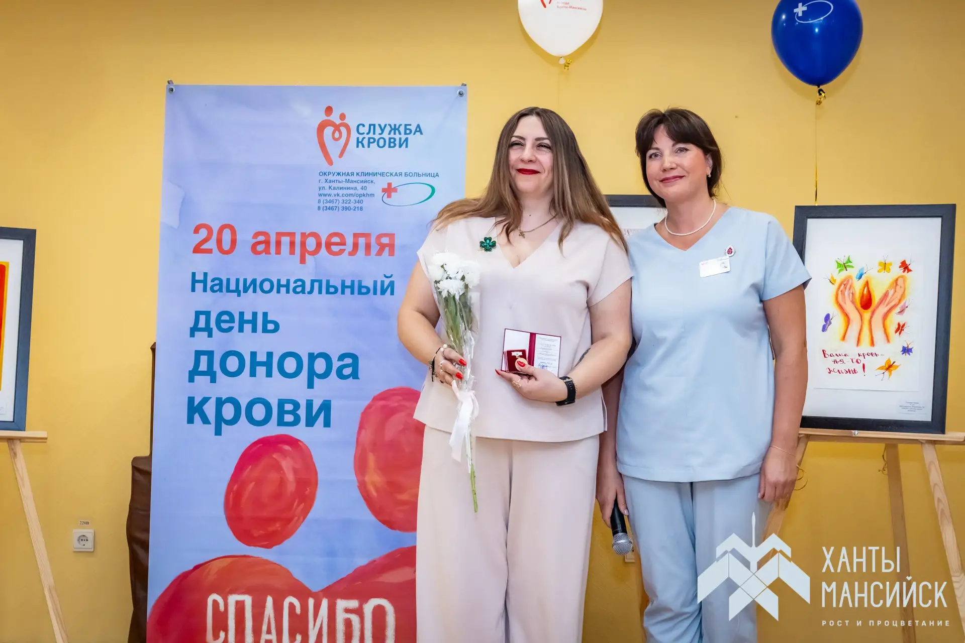 На основании приказа Минздрава России нагрудный знак «Почётный донор России» вручили хантымансийцам, которые за жизнь сдали кровь более 40 раз или плазму более 60 раз.