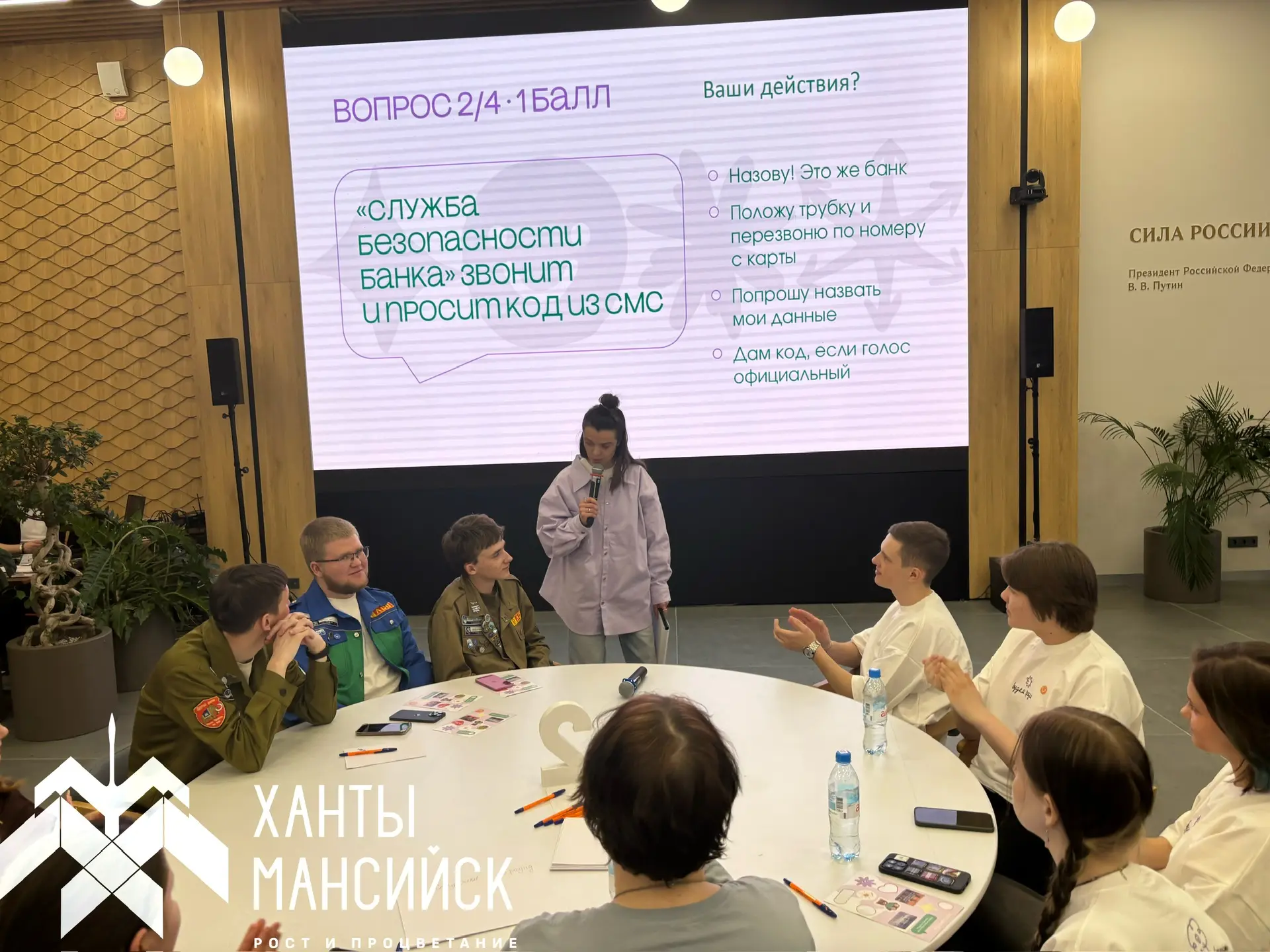 Для горожан проводят профилактические мероприятия по различным направлениям. Сегодня студенты Ханты-Мансийска поучаствовали в квиз-игре «Код доступа: финансовая безопасность» в Национальном центре «Россия».