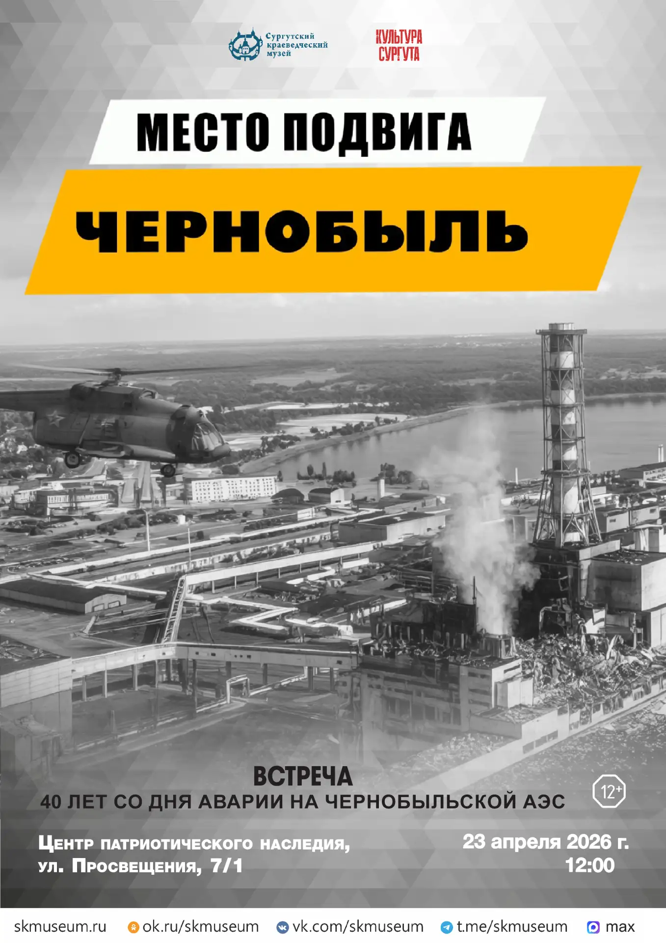 Сургутский краеведческий музей приглашает на встречу «Место подвига – Чернобыль», приуроченную к 40-летию со дня аварии на Чернобыльской АЭС