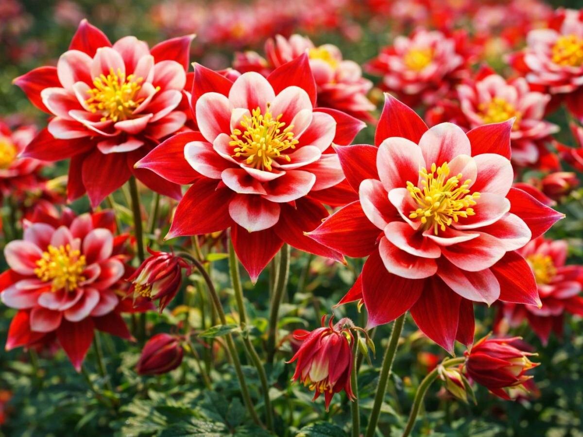 - Аквилегия: С этим растением ваш сад заиграет новыми красками. Ажурные цветы с яркими шпорцами станут настоящим украшением весеннего цветника и внесут изящество в любую композицию.