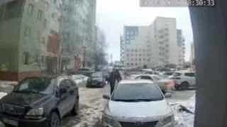 Однако есть вопросы к водителям, которые припарковались прямо перед входом в подъезд. А ещё непонятно, откуда соскользнула дама с собачкой? Вопросов больше, чем ответов.