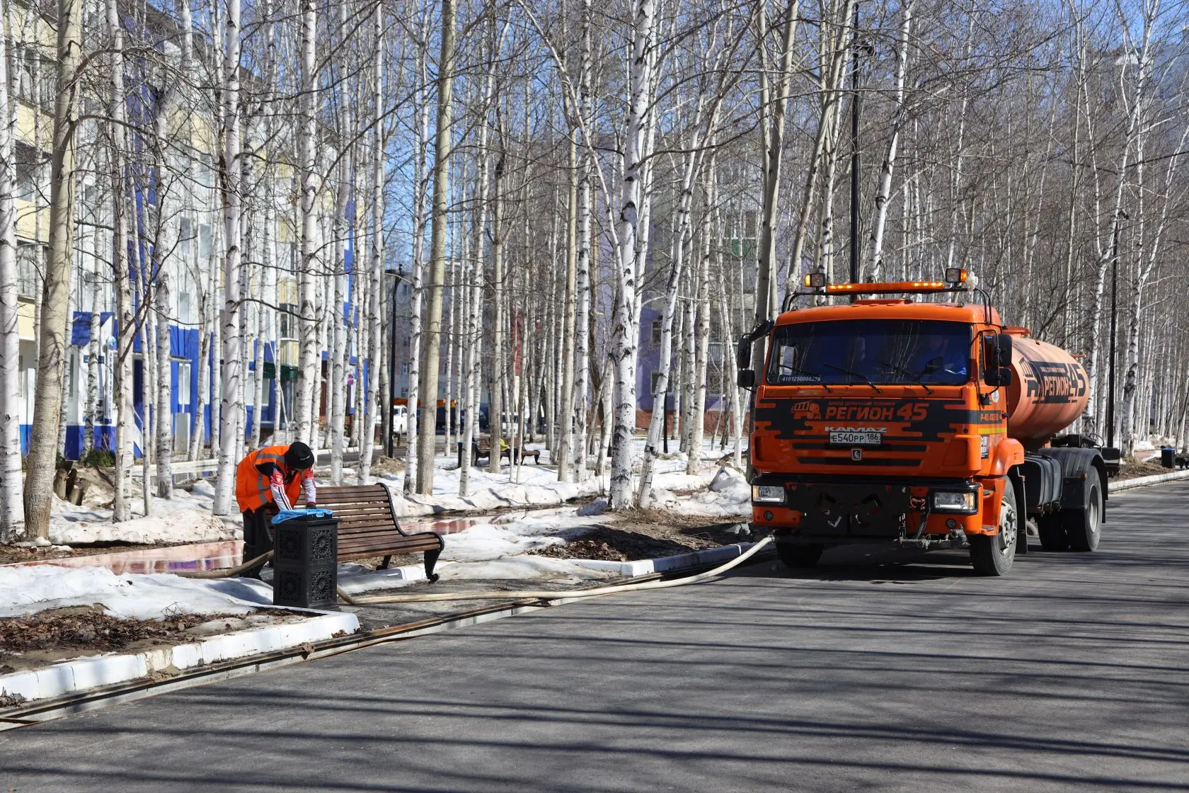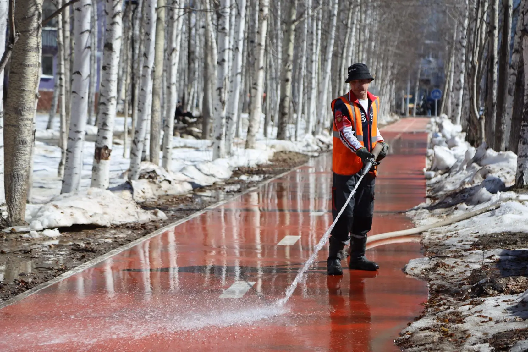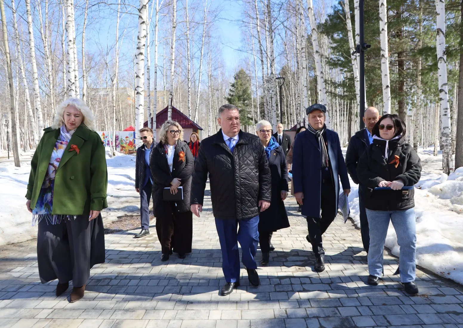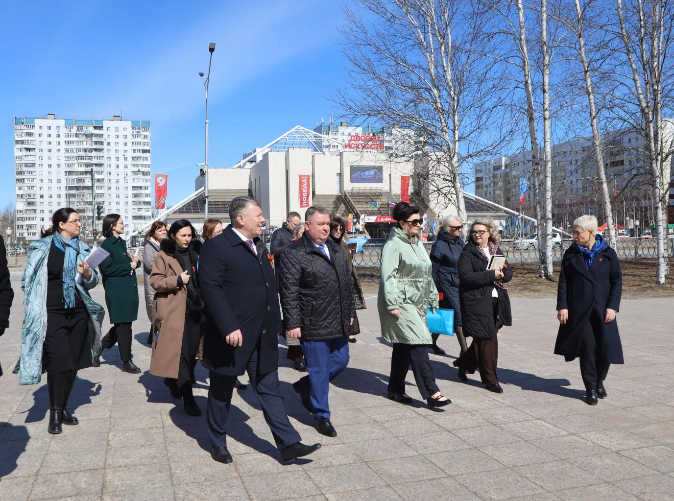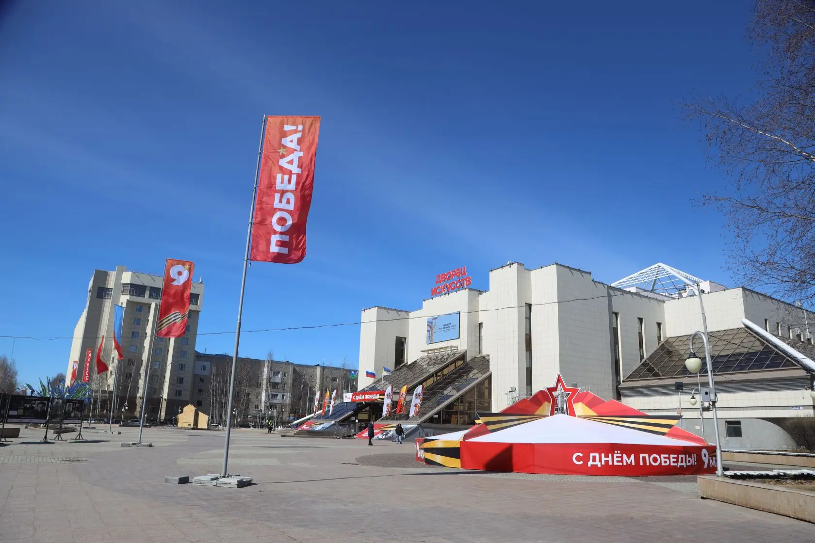 Город преображается к празднику: устанавливаются арт-объекты, флаговые конструкции, баннеры. После зимнего сезона приводятся в порядок тротуары, газоны, общественные пространства.