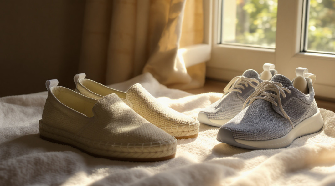 - Избегайте вешать обувь на веревку – эспадрильи могут перекоситься.